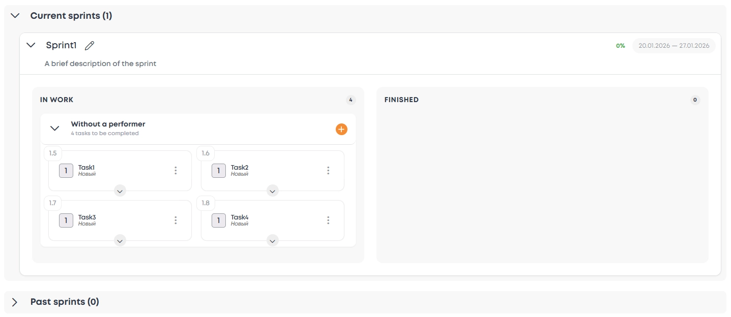 Sprints Service helps the team focus on tasks that need to be completed within a limited period of time (sprint). It allows planning work, tracking progress, and accounting for automatically calculated results.