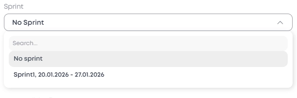 In the task editing window, find the "No Sprint" field, select the created sprint from the dropdown list, and save the changes.