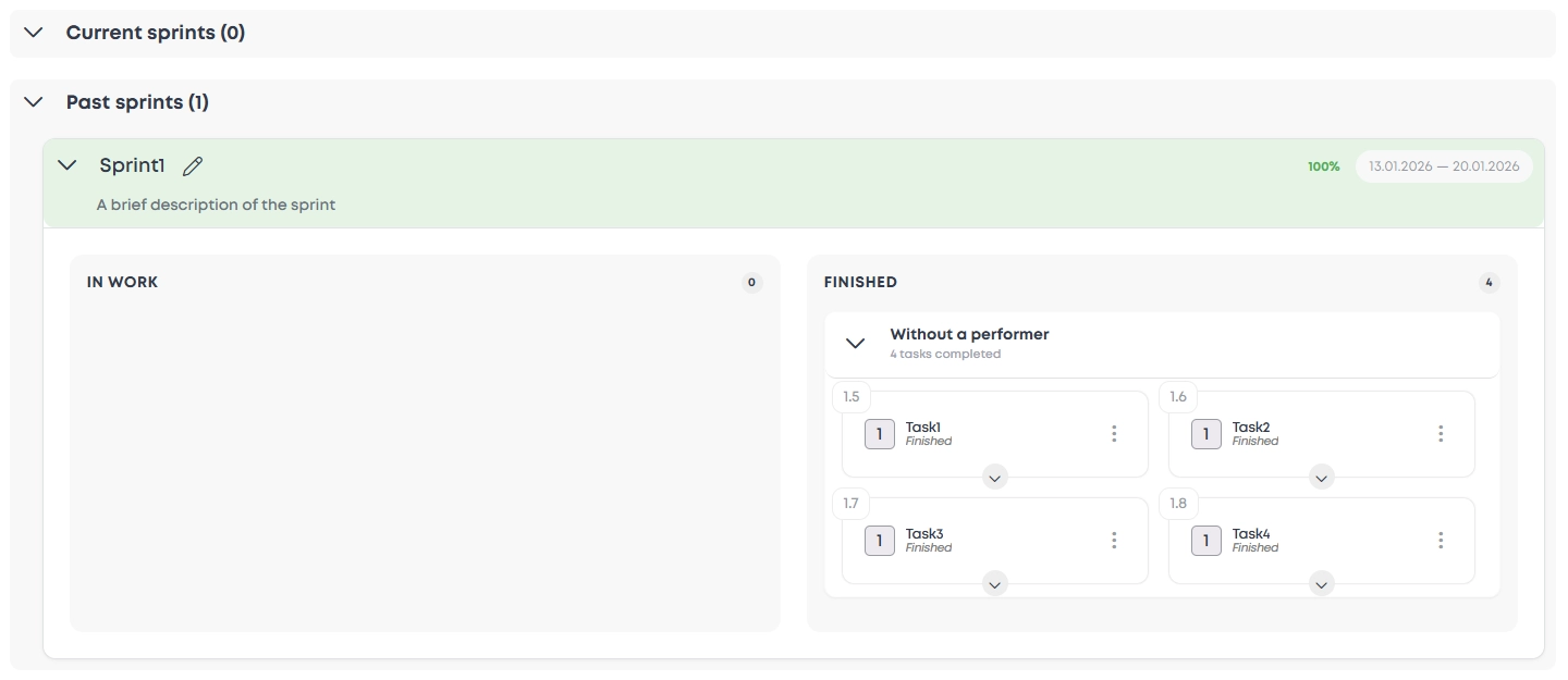 After the sprint end date passes, the sprint is automatically moved to the "Past Sprints" section.